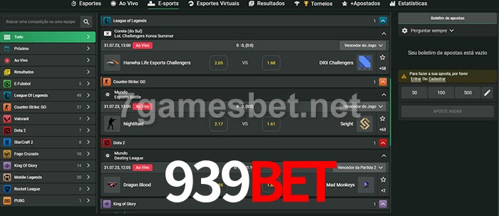 O 939bet oferece uma grande seleção de opções de apostas em e-sports com probabilidades competitivas